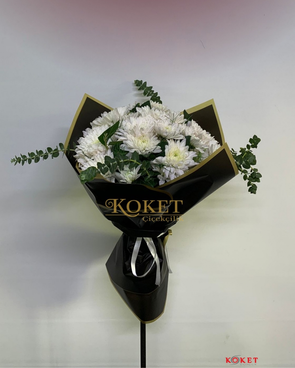 Kasımpatı Buketi Tasarım 'da kullanılan çiçek ve aksesuarlar stok durumuna göre farklılık gösterilebilir.